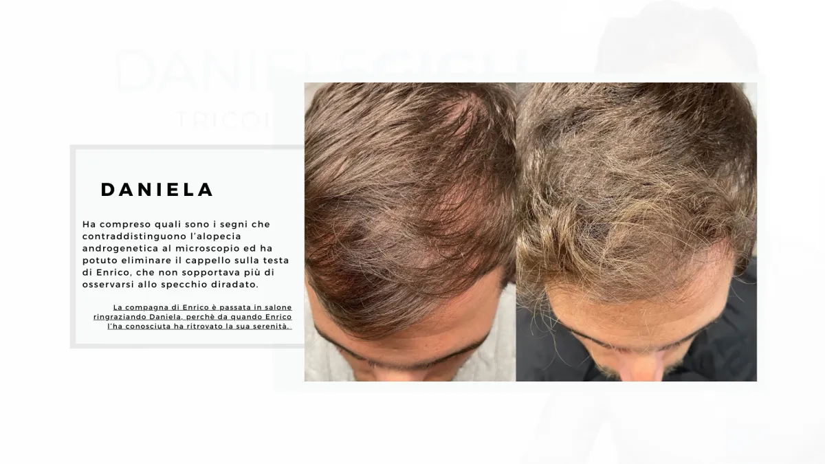 "Credevo di non essere portato per la tricologia, mi sembrava troppo complicata. Ma Daniele spiega tutto in modo così chiaro che mi ha fatto appassionare. Ora mi sento sicuro nel dare consulenze reali alle clienti. E funziona: tornano e mi chiedono di più!"